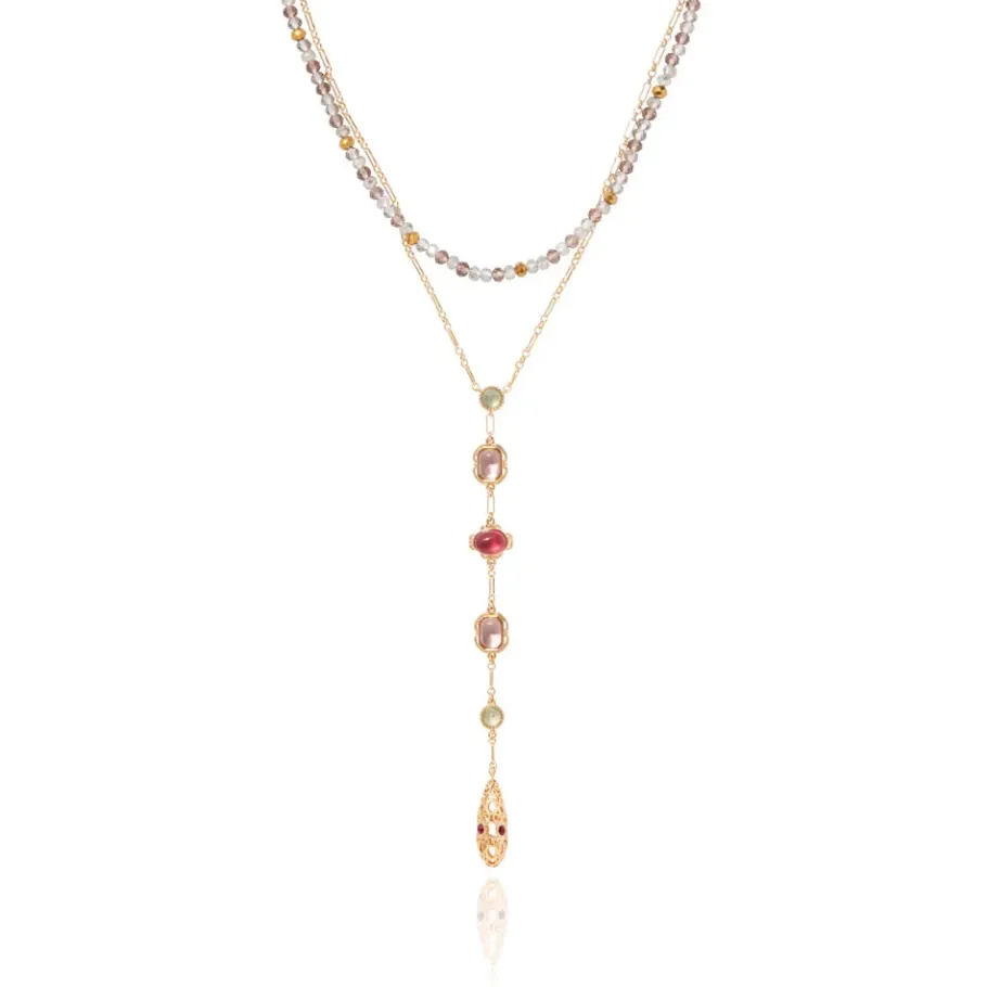 Wear A Regal Y-Necklace Fit For Royalty. This Colorful, 12K Gold-Plated Piece Features A 2-Inch Extender On The Chain. It Was Inspired By The Wealth Of Jewels Seen In Portraits Of Elite Members Of The Tudor Court, Including King Henry Viii And His Daughters, Mary I And Queen Elizabeth I.