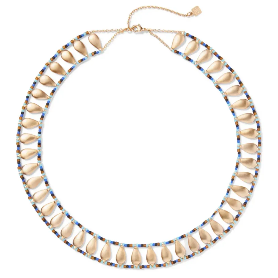 This Striking Collar Necklace Celebrates An Ancient Egyptian Broad Collar In The Met Collection. Our Elegant Statement Piece Features 18K Gold Plate With Turquoise, Carnelian, And Black Glass Beads; It Is 16” Long With A 2” Extender.