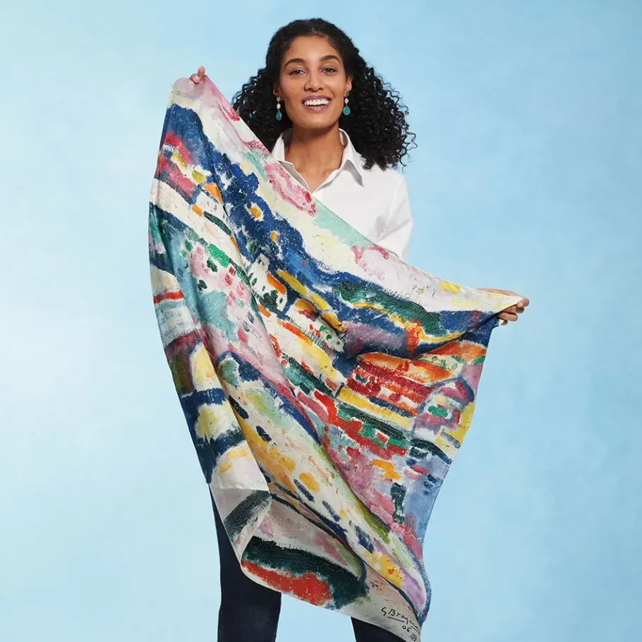 Our Silk Scarf Reproduces A Detail From Boats On The Beach At L’Estaque (1906), An Evocative Oil Painting By Georges Braque (French, 1882–1963) In The Met Collection. Braque Encountered Fauvism At The Salon D’Automne Of 1905, After Which He Briefly Experimented With The Style. This Harbor View Of L’Estaque, A Mediterranean Fishing Village That Attracted Braque, As Well As André Derain (French, 1880–1954) And Paul Cézanne (French, 1839–1906), Exhibits The Bright Colors, Broad Outlines, And Flattened Space Of A Fauvist Composition.