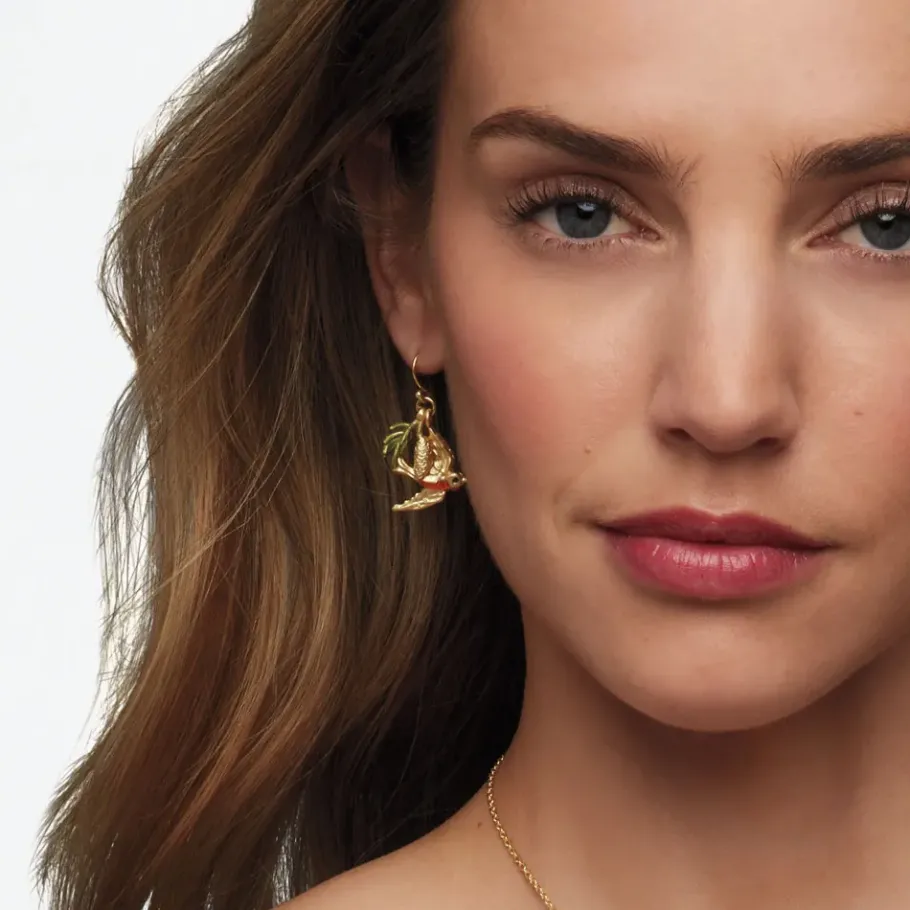 These Festive Earrings Recall A Charming Trade Card (1889–90) In The Museum’S Collection Of Drawings And Prints. Issued By Kinney Brothers As Part Of The New Years 1890 Series, The Met’S Commercial Color Lithograph Depicts Birds Gathering On A Snow-Covered Pine Branch Outside A Window Revealing A Heartwarming Holiday Celebration Inside.