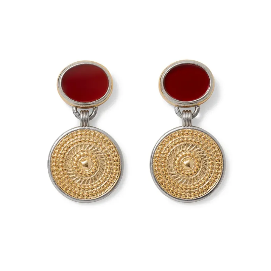 The Eye-Catching Medallions And Carnelian Accents Characterizing These Drop Earrings Are Adapted From A Late 19Th–Early 20Th-Century Dorsal Plait Ornament, A Type Of Hair Ornament Traditionally Worn To Embellish The Braids Of Married Turkmen Women. The Elaborate Artistry Of The Original, Attributed To Central Asia Or Iran And Now In The Met’S Islamic Art Collection, Is Typical Of The Yomut People, A Turkmen Group Inhabiting Central Asia. It Presents A Diverse Array Of Shapes, From Cordiforms To Lozenges, As Well As Bells And, Notably, Persian Coins. The Decorative Repurposing Of Coins Reflects The Turkmen’S Pride As Warriors, Though In The Example That Inspired These Earrings, Rather Unusually, They Serve As The Base For Gilded And Embossed Plaques, Which Obscures Their Original Use As Currency.