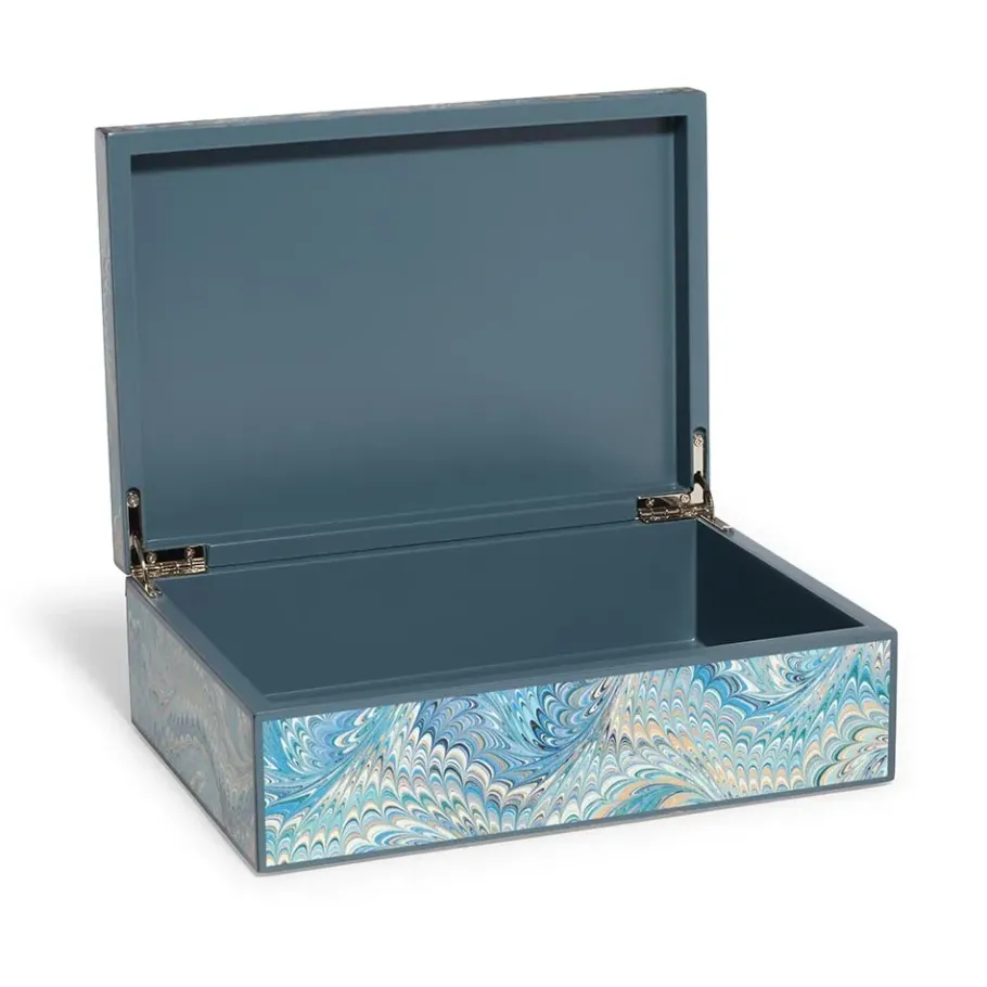 The Centuries-Old Practice Of Marbling Paper Yields Astounding Patterns. Some Designs Are Spontaneous, Others Are Controlled; And While Techniques Vary Between Cultures, Marbling Typically Refers To A Method Of Transferring Colors From The Surface Of A Water Bath Onto A Piece Of Paper. This Tradition Is Carried Forth By The Contemporary Artists Represented In The Paper Legacy Project, An Initiative Spearheaded By The Museum’S Thomas J. Watson Library To Preserve And Promote The “Golden Age” Of American Decorated Paper. The Mesmerizing Design On This Sophisticated Lacquer Box Is Paper Legacy Project Artist Faith Harrison’S Wave Pattern From 1988.