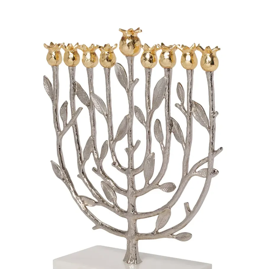 The Pomegranates Embellishing This Elegant Menorah Evoke A 17Th-Century British Depiction Of The Tree Of Life In The Museum’S Holdings. This Uniquely Embroidered Canvas Textile (First Half 17Th Century) Showcases The Divine Tree, Introduced In The Book Of Genesis, Miraculously Bearing Multiple Species Of Fruits. The Artisan’S Addition Of Animals And Celestial Bodies Likewise Alludes To The Idyllic Abundance In The Garden Of Eden. This Menorah Holds Candles With A 5/16-Inch Diameter.