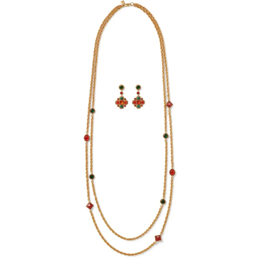 This Brightly Colored Jewelry Celebrates A Head-Turning Necklet (Date Unknown) Attributed To Algeria And Now In The Met’S Holdings Of Islamic Art. The Original Adornment, With Its Vibrant Red, Orange, And Green Stones, Is Likewise Embellished With Crescent-Shaped Pendants That Hang From The Base. These Suspended Elements Would Have Made A Sound With The Wearer’S Movement, Lending An Auditory Dimension To This Striking Piece.