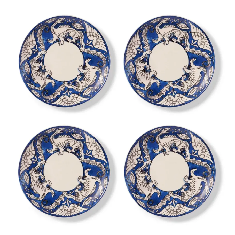 Our Striking Salad Plates Adapt The Imagery On A Brilliantly Embellished Plate (Ca. 1890–1907) By William De Morgan (British, 1839–1917) For Sands End Pottery (British). Having Kicked Off His Career Painting Stained Glass For The Great William Morris (British, 1834–1896), De Morgan Developed A Keen Eye For Color; He Produced Glazes With Richer, Softer Hues Than His Contemporaries, And Became Known For His “Persian-Style” Pottery Bearing Iznik Influences. The Designer Was Particularly Fond Of Dragons, Which He Used To Anchor The Harmonizing Motifs On This Ceramic Creation In The Met Collection.