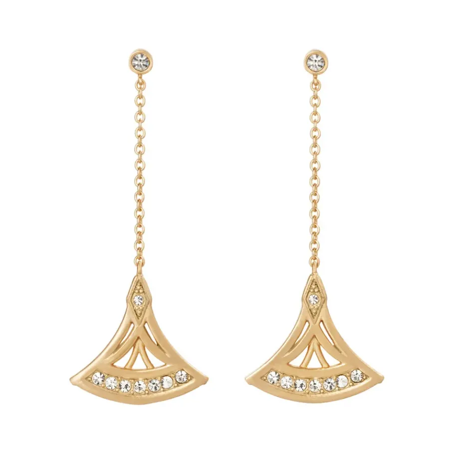 Named For French Ballet Dancer Zizi Jeanmaire, These Stylish Art Deco Drop Earrings Celebrate The Work Of Romain De Tirtoff (French, Born Russia, 1892–1990), Better Known As Erté. The Two-Tone Openwork Fan Design Features Satin-Finish 18K Gold Plate And Rhodium Plate With Swarovski® Crystals.