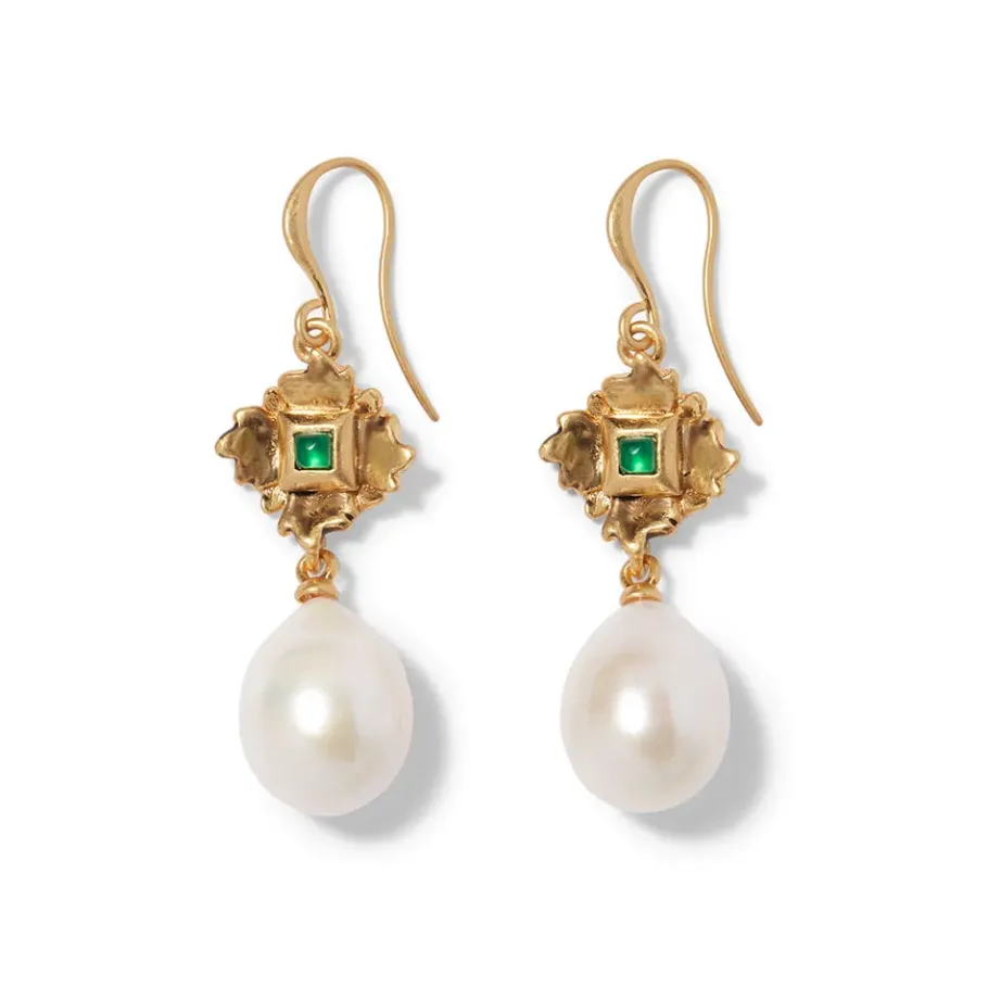 These Romantic Double-Drop Earrings Reinterpret A Mid-15Th–Century French Cluster Jewel In The Met Collection. Made Of Gold, Pearl, And Emerald With The Word “Amor” (Latin For “Love”) Suspended In Delicate Letters Along The Base, This Exquisite Adornment May Have Been Worn As Either A Pendant Or A Brooch. Some Portraits Of Young Women Also Depict Similar Pieces Exhibited In Their Hair, Or At The Shoulder Or Neck. Such Luxurious Creations Played An Important Role In Betrothal And Marriage, Serving As Magnificent Tokens Of Affection.