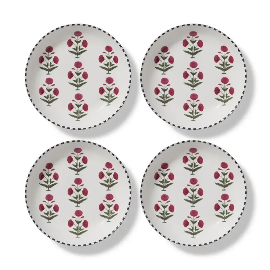 Designed By Madeline Weinrib And Produced In Collaboration With Good Earth, This Charming Set Of Fine Bone China Pasta Plates Plucks Its Floral Motif From A Late 17Th-Century Floorspread Fragment, Attributed To India, In The Met Collection.