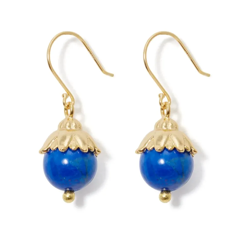The Ancient Egyptians Loved The Color Blue, Which Represented The Power Of The Heavens And Water—And You Will, Too, When You Wear These Lotus-Shaped Drop Earrings In 18K Gold Plate With Blue Glass Beads.