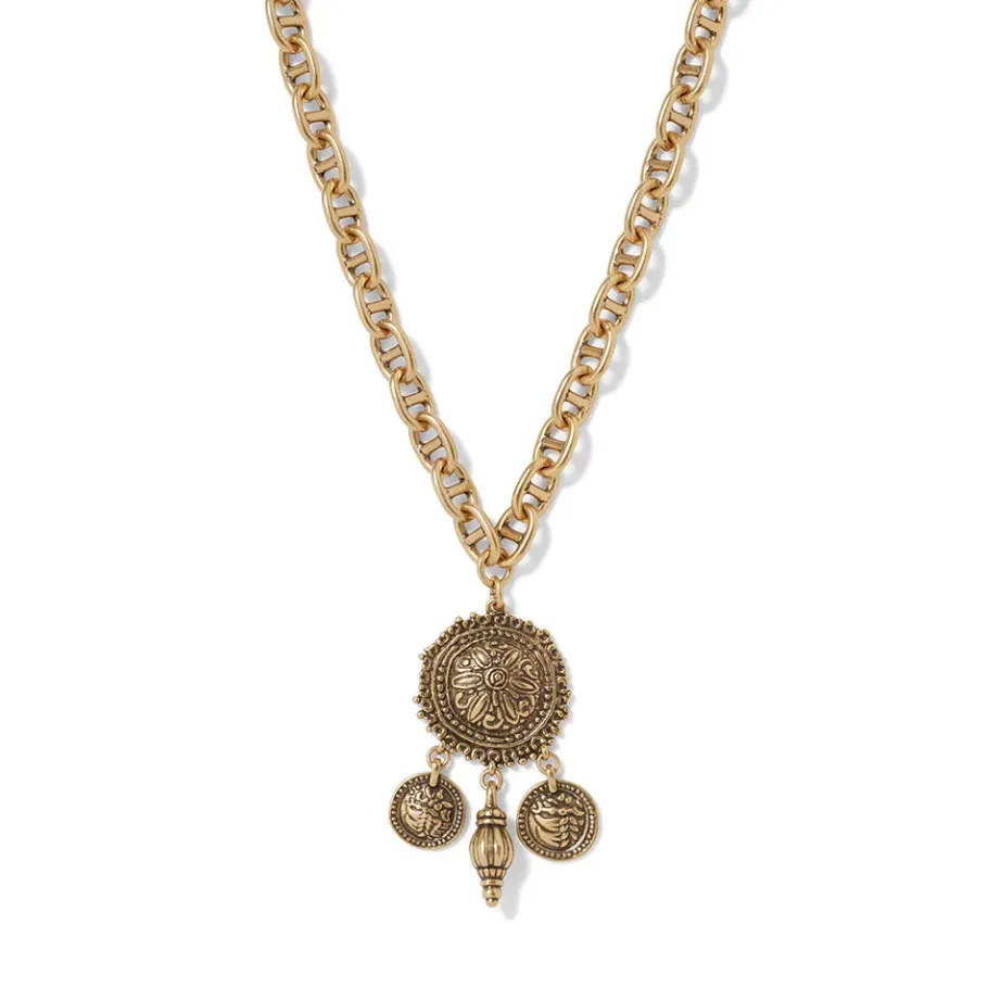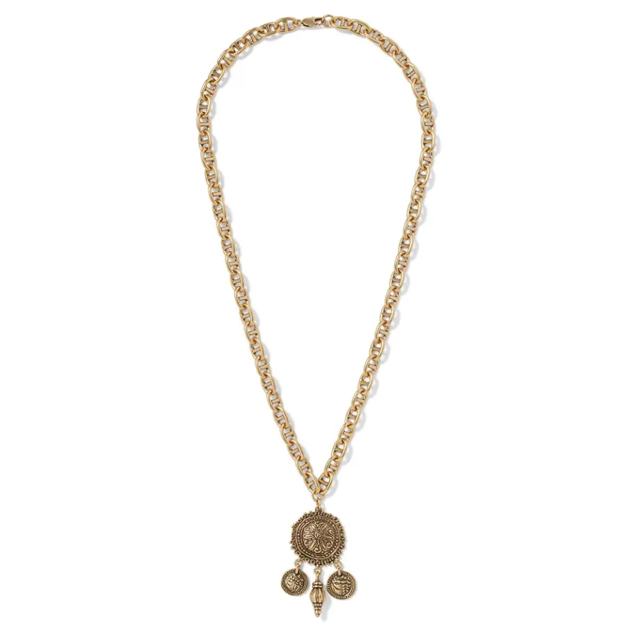 Coins Have Long Been Used Across The Islamic World To Create Spectacular Adornments. In Honor Of This Ancient Practice, Our Inspired Necklace References A Small Ornament (Late 19Th–Early 20Th Century) Attributed To Probably Tunisia Or Turkey. The Original Features Decorative Silver Coins Stamped In Emulation Of 18Th-Century Ottoman Currency; Specifically, Coinage Used In The Year 1797 (A.H. 1203 According To The Islamic Calendar) During The Reign Of Sultan Selim Iii. The Coins In The Museum’S Piece Were Likely Copied From Discontinued Currency Available In Tunisia During And After Ottoman Presence In North Africa. The Pin Element On The Original Suggests That It Would Have Been Worn Fastened To A Garment Or Cloth Headdress.